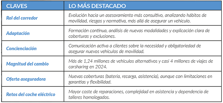 “Nuestra labor se amplía: adaptamos productos, explicamos nuevas obligaciones y acompañamos al cliente en la adopción de soluciones de movilidad cada vez más tecnológicas y variadas”.