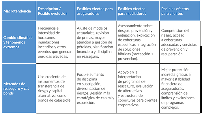 A nivel global, estos factores -tecnológicos, climáticos, geopolíticos y regulatorios- están transformando la naturaleza del riesgo, los modelos de negocio y la relación entre aseguradoras, clientes, reguladores y reaseguradoras. El reaseguro sigue siendo un instrumento clave para repartir riesgos entre diferentes actores y cualquier cambio en las primas, políticas de suscripción o disponibilidad de capacidad frente a eventos extremos podría influir en cómo las aseguradoras estructuran los productos, los precios que ofrecen y la cantidad de cobertura disponible para empresas y particulares.