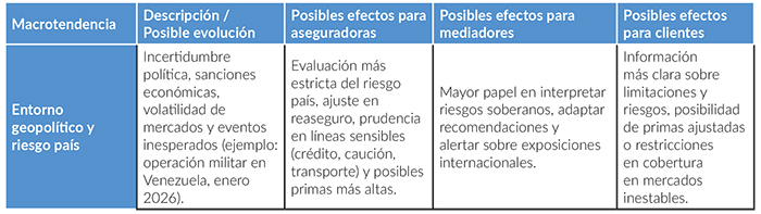 La geopolítica sigue siendo un factor clave de incertidumbre para el seguro global y es probable que su influencia persista a lo largo de 2026, que ya ha comenzado con un hecho inesperado en Venezuela con la operación militar de Estados Unidos en Caracas.