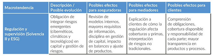 No hay que olvidar otro factor que probablemente seguirá influyendo en el sector en 2026: la regulación europea. Solvencia II y marcos complementarios obligan a las aseguradoras a integrar riesgos emergentes -cibernéticos, climáticos y tecnológicos- en la valoración de capital y en la gestión de riesgos. Esto podría traducirse en revisiones de modelos internos, mayores requisitos de información y supervisión más estrecha. La regulación española se alinea con estos estándares, con especial atención a la resiliencia operativa y a la adopción de criterios ESG (ambientales, sociales y de gobernanza).
